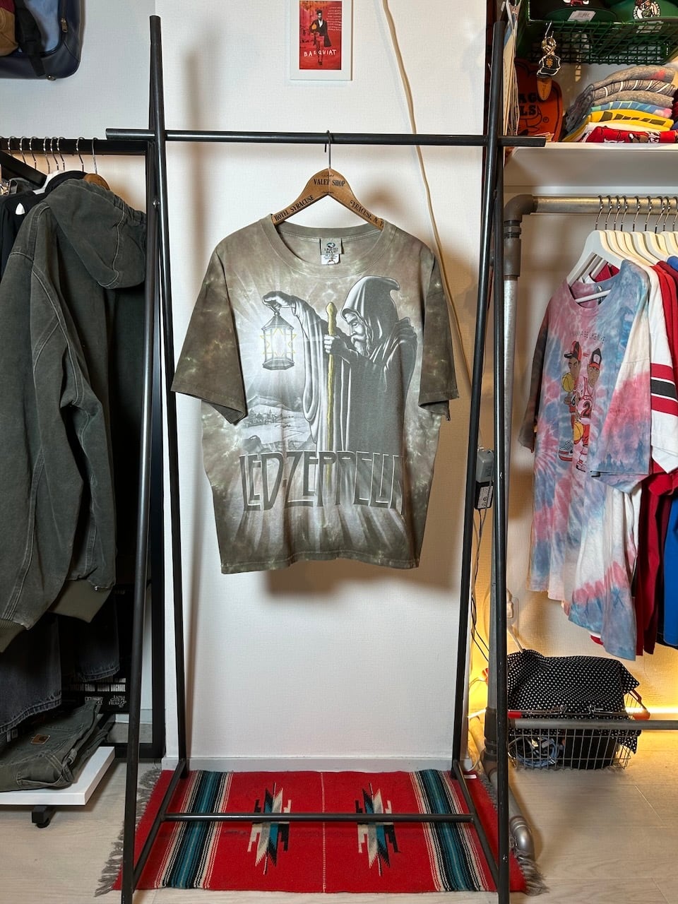 こちらの 2006 Led Zeppelin Tee Mは、2006年リキッドブルー社製のレッドツェッペリンTシャツです。一風変わったアースカラーのタイダイボディに、アイコニックな明かりを持った爺さんアートが全面に描かれており、バックには光を放つようなデザイン。シルエットもゆるめの短丈で抜群の存在感を放つ一枚です!