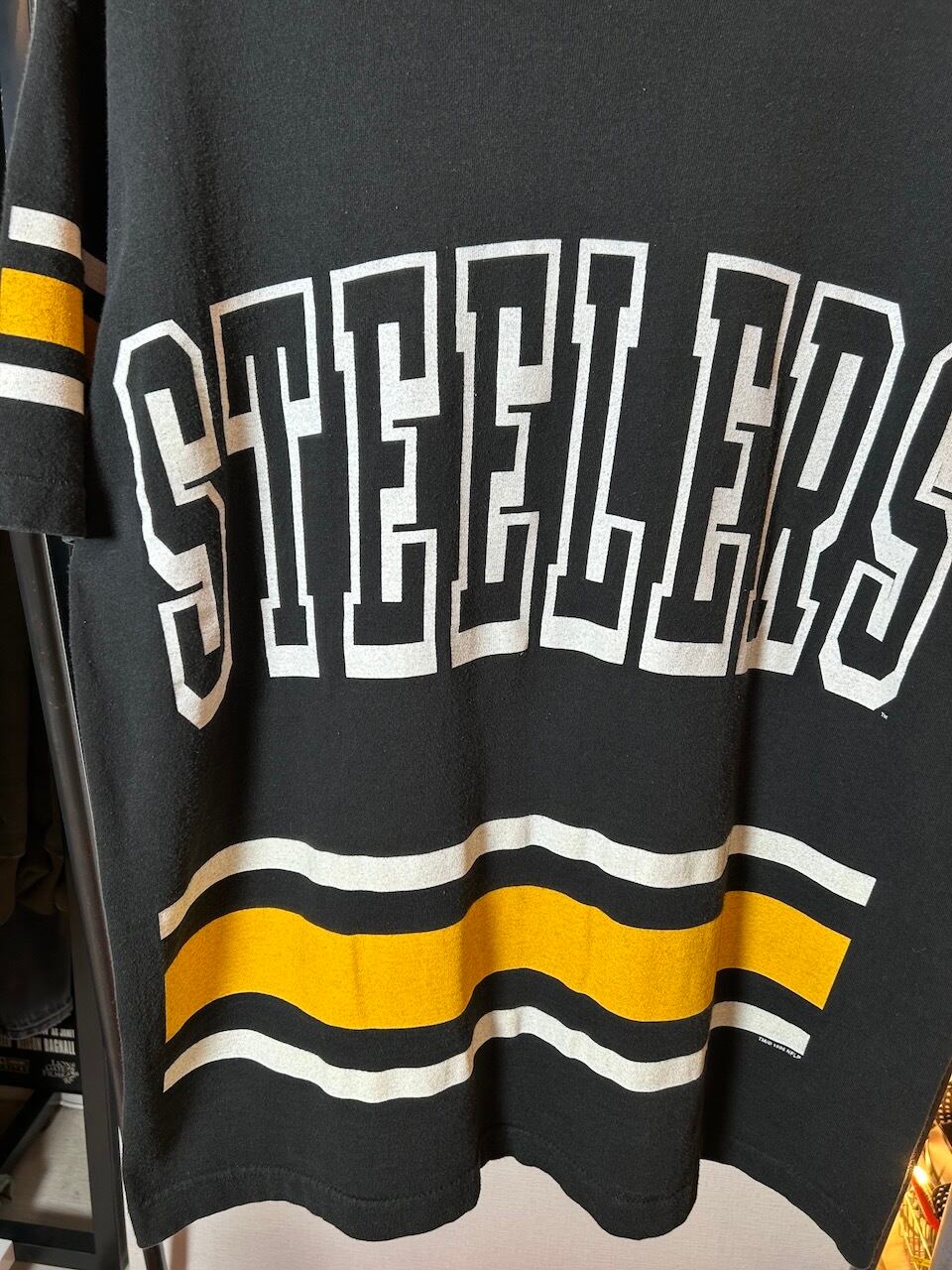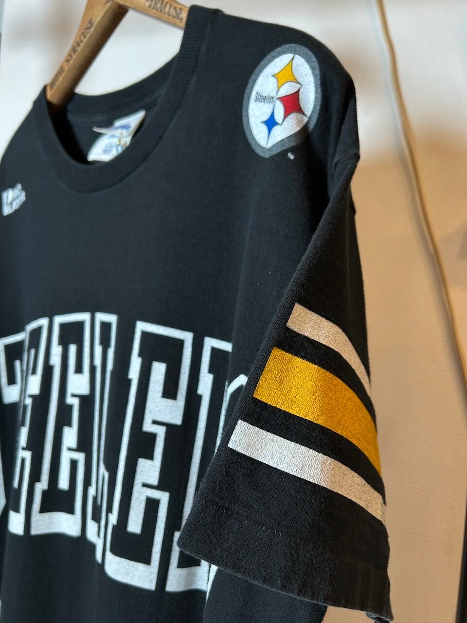 ・表記サイズL。黒を基調としたスティーラーズカラー。