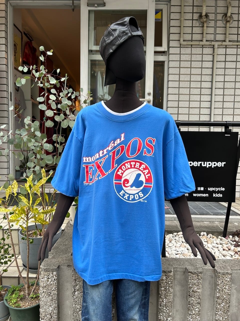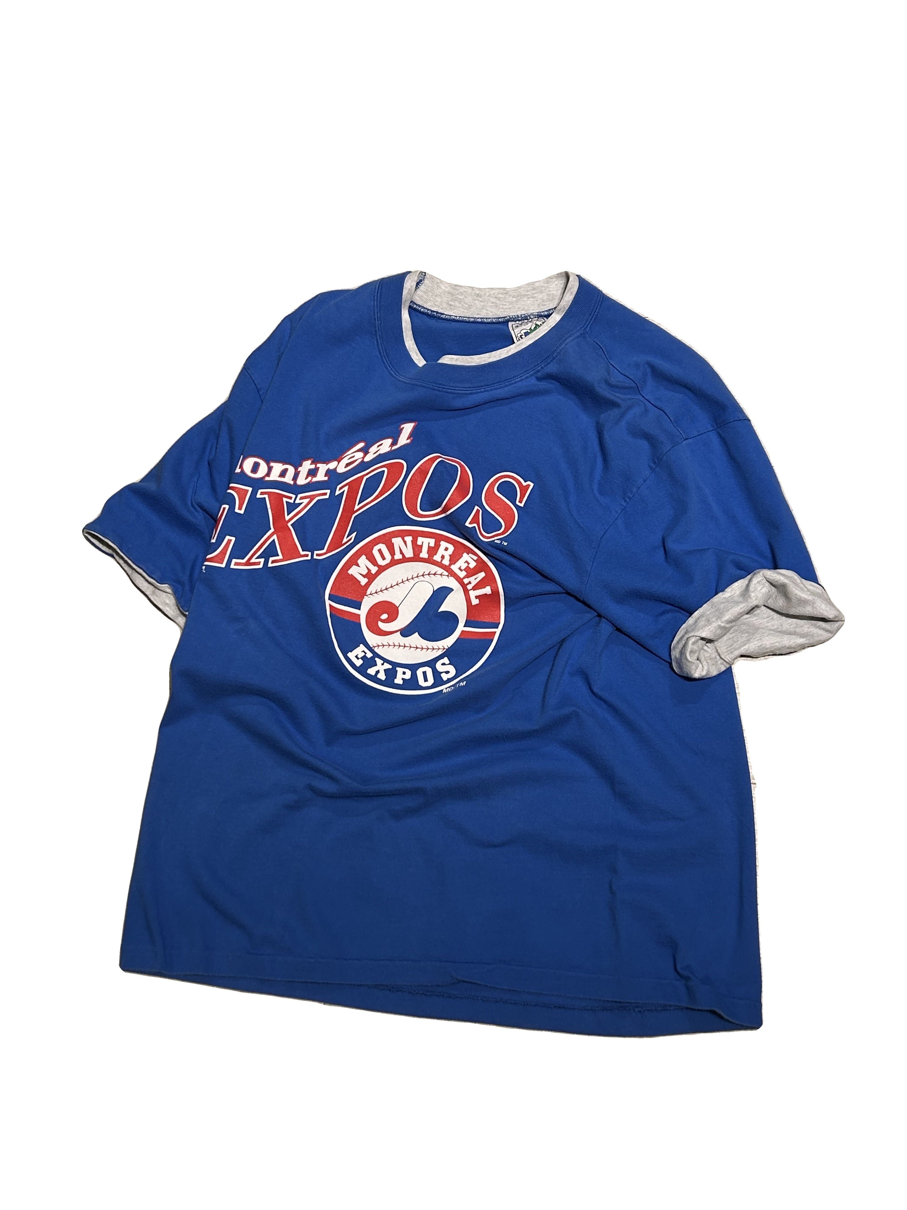 こちらの1993 Montreal Expos Tee Lは、1993年にカナダで製造されたモントリオールエクスポズのTシャツです。鮮やかなロイヤルブルーに映えるクラシックなチームロゴが印象的で、袖のダブルカラー切り替えがアクセントになっています。